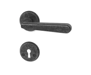 Dörrhandtag av mässing med dubbelverkande returfjäder för ytterdörr med modullåshus. Traditionellt handtag med lantlig karaktär. Med sin dubbelverkande returfjäder fungerar handtaget också med låshus där regling sker genom att handtaget lyfts. Passar till dörrtjocklek 38-70 mm. Utsprång 60 mm. Finns också som innerdörrshandtag. Finns i flera Ytbehandlingar.